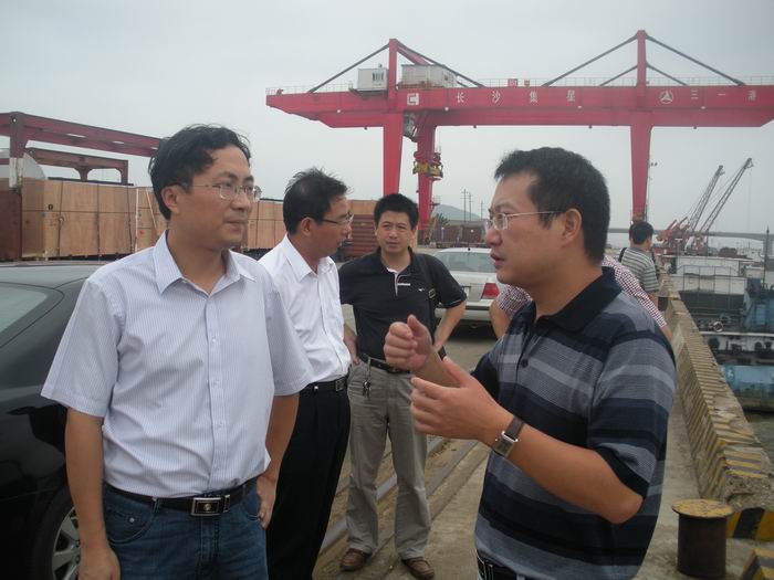 2010年9月8日,湖南省社科院研究員黃海一行在長(zhǎng)沙市口岸辦副主任王光輝的陪同下,來(lái)長(zhǎng)沙新港進(jìn)行長(zhǎng)沙水運(yùn)口岸建設(shè)的調(diào)研。