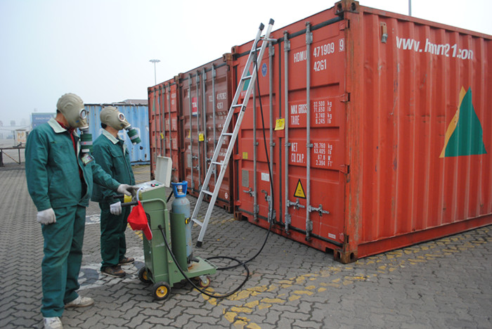 日前,中南地區(qū)第一臺最現(xiàn)代化的“移動式微電腦施藥器”在長沙新港投入使用。近日,湖南省進出口檢驗檢疫局技術(shù)人員,在長沙新港首次對國際集裝箱采用封閉式消毒、熏蒸。這是我省使用的第一臺消毒熏蒸設(shè)備,結(jié)束商檢開箱施藥消毒熏蒸的歷史。