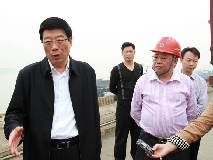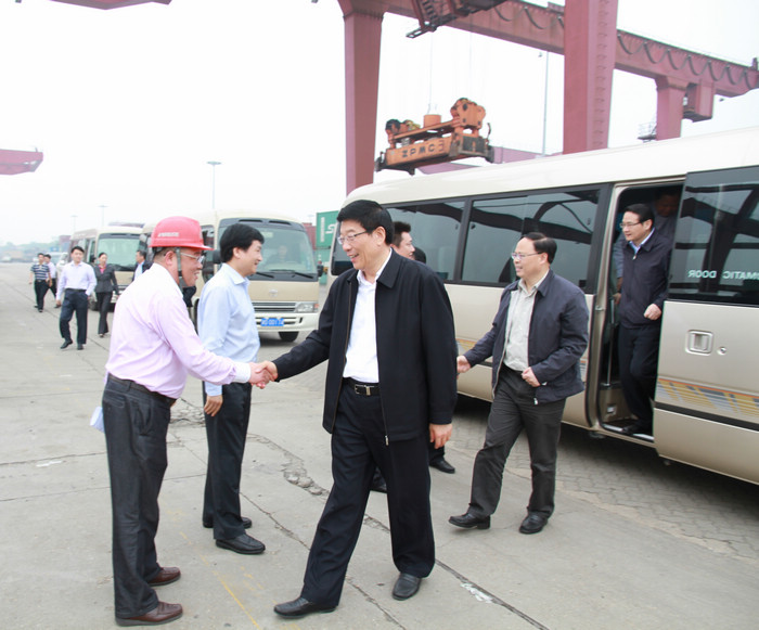 5月3日下午,湖南省委書記徐守盛,省委常委、省委秘書長易煉紅,及省信訪局、省發(fā)改委、省經(jīng)信委、省民政廳、省公安廳、省政府辦公廳等領(lǐng)導一行,在長沙市委副書記、市長張劍飛,市委副書記張迎龍,市委常委、市委秘書長李軍,開福區(qū)區(qū)委書記李蔚,區(qū)委副書記、區(qū)長廖建華,金霞開發(fā)區(qū)黨工委書記張毅,黨工委副書記、管委會主任袁政國等領(lǐng)導的陪同下來長沙新港考察調(diào)研。湖南長沙新港有限責任公司董事長、總經(jīng)理唐忠良,董事、財務(wù)總監(jiān)趙赤書,董事、副總經(jīng)理張韜,董事、長沙集星集裝箱碼頭有限公司副總經(jīng)理辛華等公司領(lǐng)導接待。