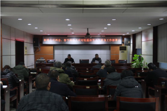 公司領(lǐng)導(dǎo)高度重視,召開工作部署緊急會(huì)議。 1月25日下午五點(diǎn)半,新港公司召開“兩會(huì)春節(jié)維穩(wěn)及應(yīng)對(duì)低溫冰雪天氣緊急工作部署會(huì)”。會(huì)上,首先由公司副總辛華同志傳達(dá)了市政府《關(guān)于進(jìn)一步做好應(yīng)對(duì)低溫雨雪冰凍天氣工作的緊急通知》以及交通集團(tuán)領(lǐng)導(dǎo)對(duì)維穩(wěn)和安全工作的指示精神,并針對(duì)新港公司實(shí)際情況要求各部門和單位采取措施,做好應(yīng)對(duì)防范工作。接著,新港公司黨委書記、董事長(zhǎng)唐忠良同志做出重要指示,當(dāng)前公司工作重點(diǎn)要放在安全和維穩(wěn)上,公司領(lǐng)導(dǎo)要帶班值班,親臨一線,靠前指揮,第一時(shí)間處理突發(fā)問題。他還要求公司各部門負(fù)責(zé)人要從思想上高度重視極端天氣給碼頭生產(chǎn)作業(yè)造成的惡劣影響,要積極行動(dòng)采取有效措施應(yīng)對(duì)低溫雨雪冰凍天氣。  各部門主動(dòng)作為,多方聯(lián)動(dòng),一線防范應(yīng)對(duì)。 辦公室通過公司自媒體加強(qiáng)宣傳工作,溫馨提示員工上下班途中注意交通安全。安保部嚴(yán)格按照交通集團(tuán)領(lǐng)導(dǎo)要求,落實(shí)24小時(shí)值班制度,值班人員堅(jiān)守崗位,保證通訊暢通,每天定時(shí)向交通集團(tuán)匯報(bào)安全情況。設(shè)備部緊急采購(gòu)麻袋、工業(yè)鹽和草繩等防凍物資,同時(shí)維修人員頂著嚴(yán)寒冒著凍雨搶修和維護(hù)生產(chǎn)作業(yè)設(shè)備,保證設(shè)備良好運(yùn)轉(zhuǎn)。生產(chǎn)運(yùn)營(yíng)部密切關(guān)注碼頭前沿作業(yè)情況,在確保安全的前提下,搶卸船舶重要物資。市場(chǎng)營(yíng)銷部積極與客戶溝通,及時(shí)做好解釋工作。新港三期工程部與施工方對(duì)接,確保三期工程建設(shè)安全。