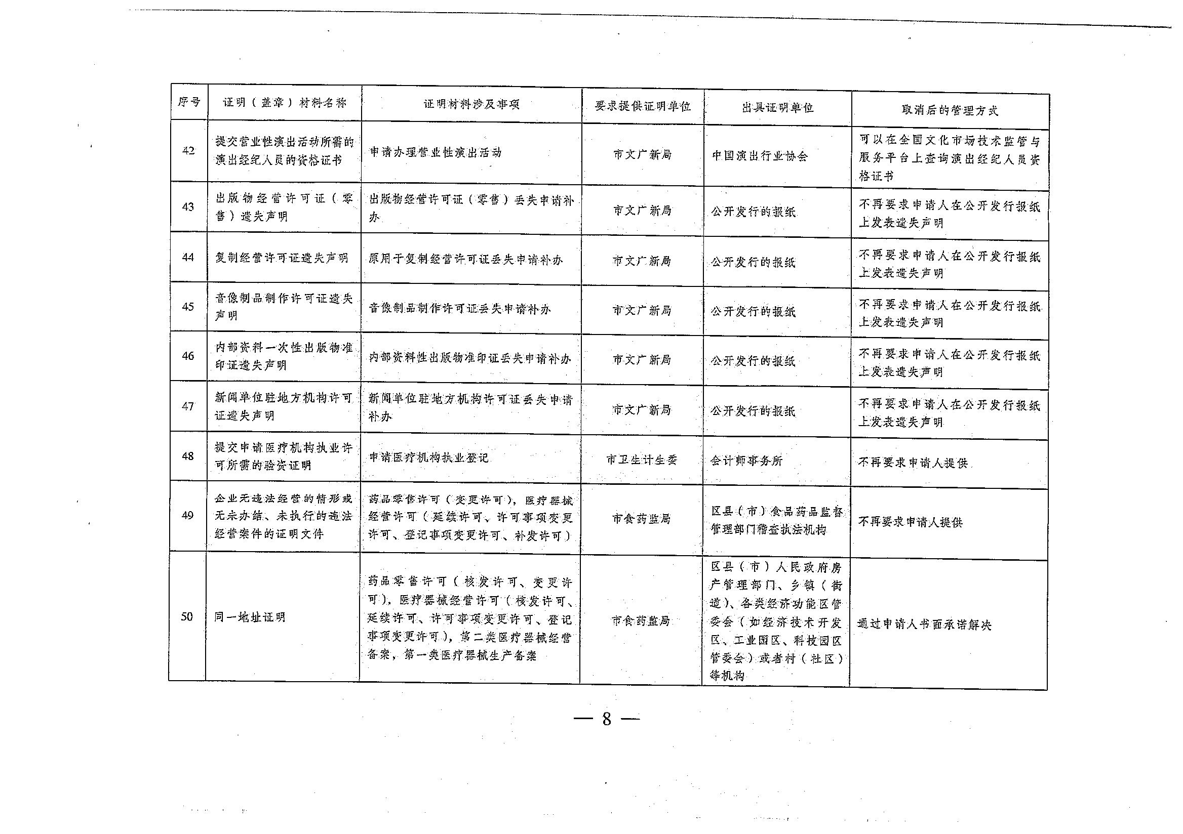關(guān)于取消一批市直單位要求申請人提供的證明材料的通知