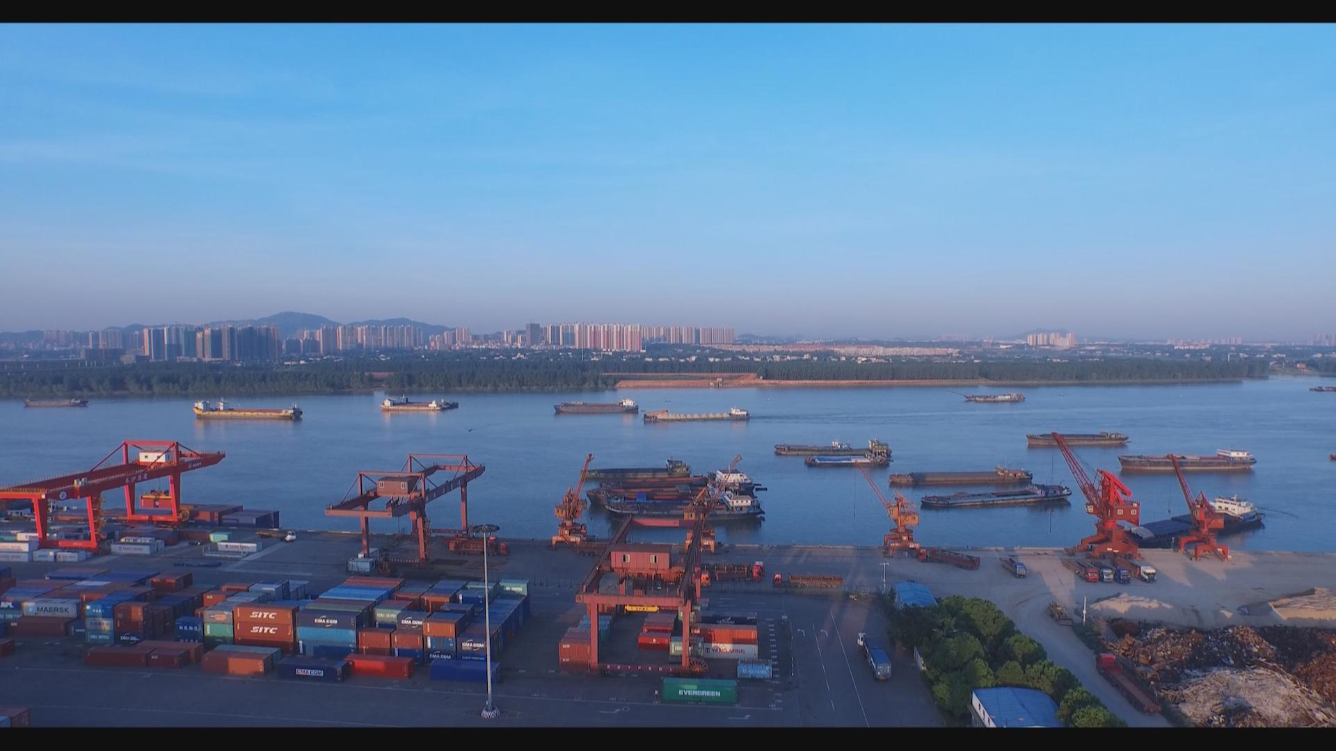 在岳陽城陵磯港,記者劉媛源介紹說:“為了更好地利用湖南良好的水運資源,長沙與岳陽打出了一套漂亮的組合拳。我現(xiàn)在所在的位置就是岳陽市的城陵磯新港,經(jīng)過不到一天的航行,那批從長沙新港順流而下的貨物正在這里進行新一輪的裝卸,這些貨物將乘坐我身后更加重量級的貨輪,從這里啟程運往海外。”