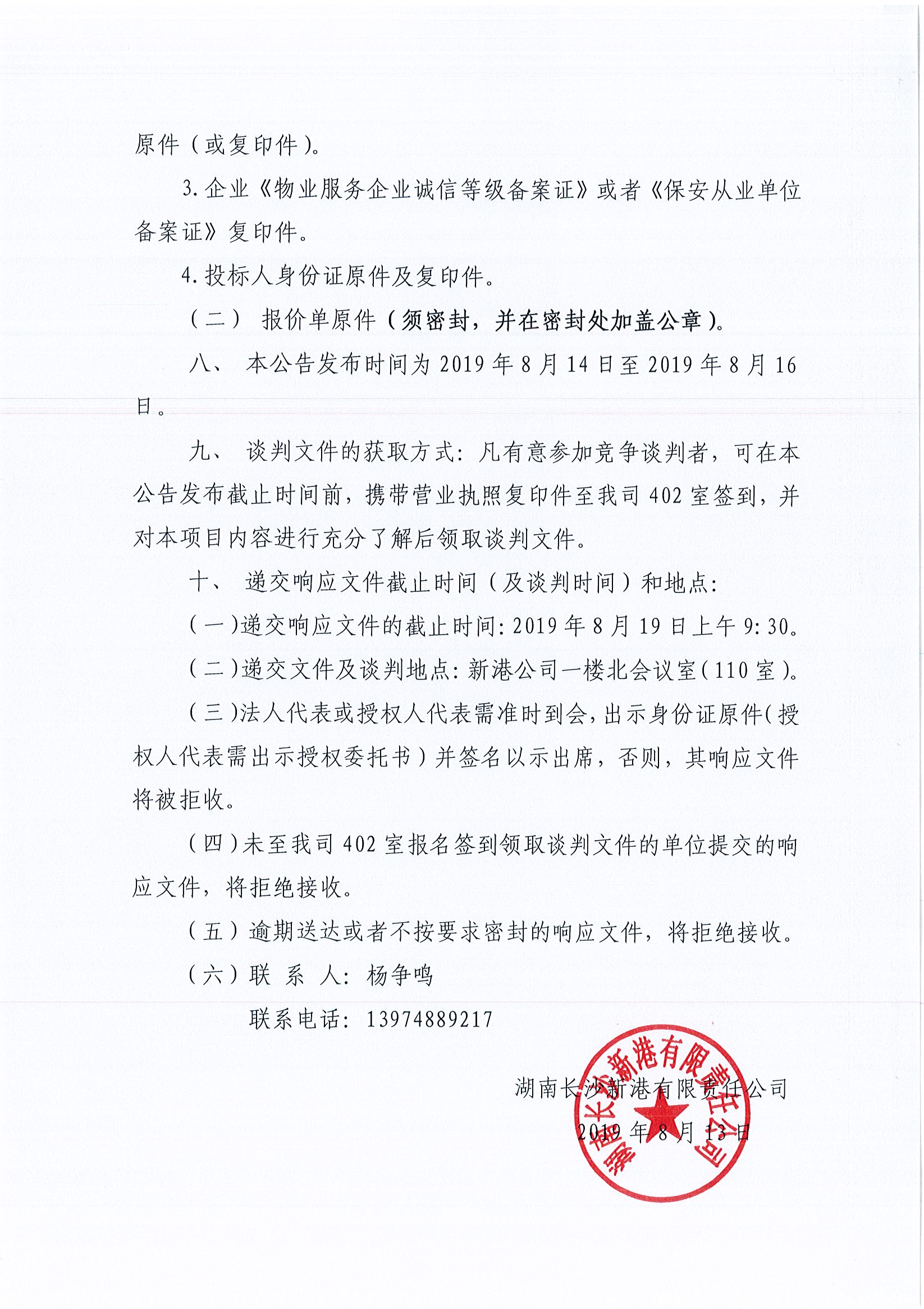 長沙新港門衛(wèi)及辦公樓安保服務(wù)項目競爭性談判邀請公告(延期)