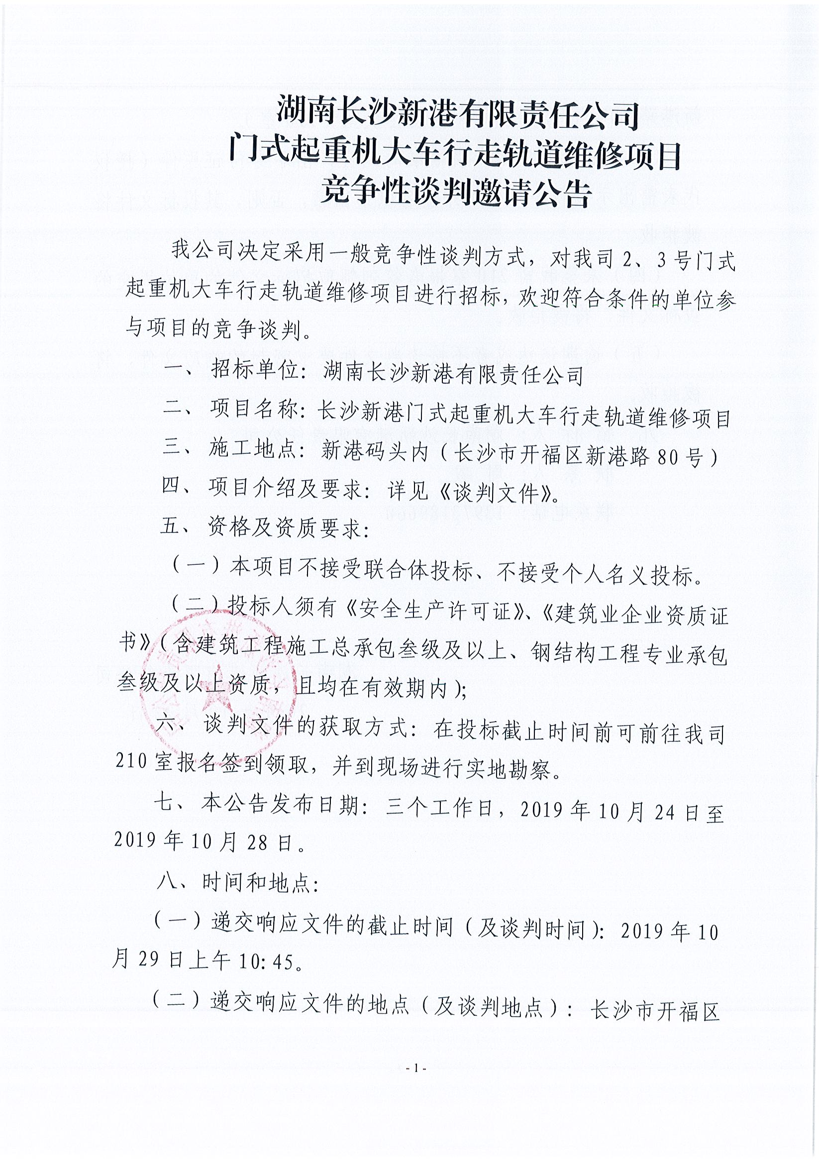 湖南長沙新港有限責(zé)任公司門式起重機(jī)大車行走軌道維修項(xiàng)目競爭性談判邀請(qǐng)公告