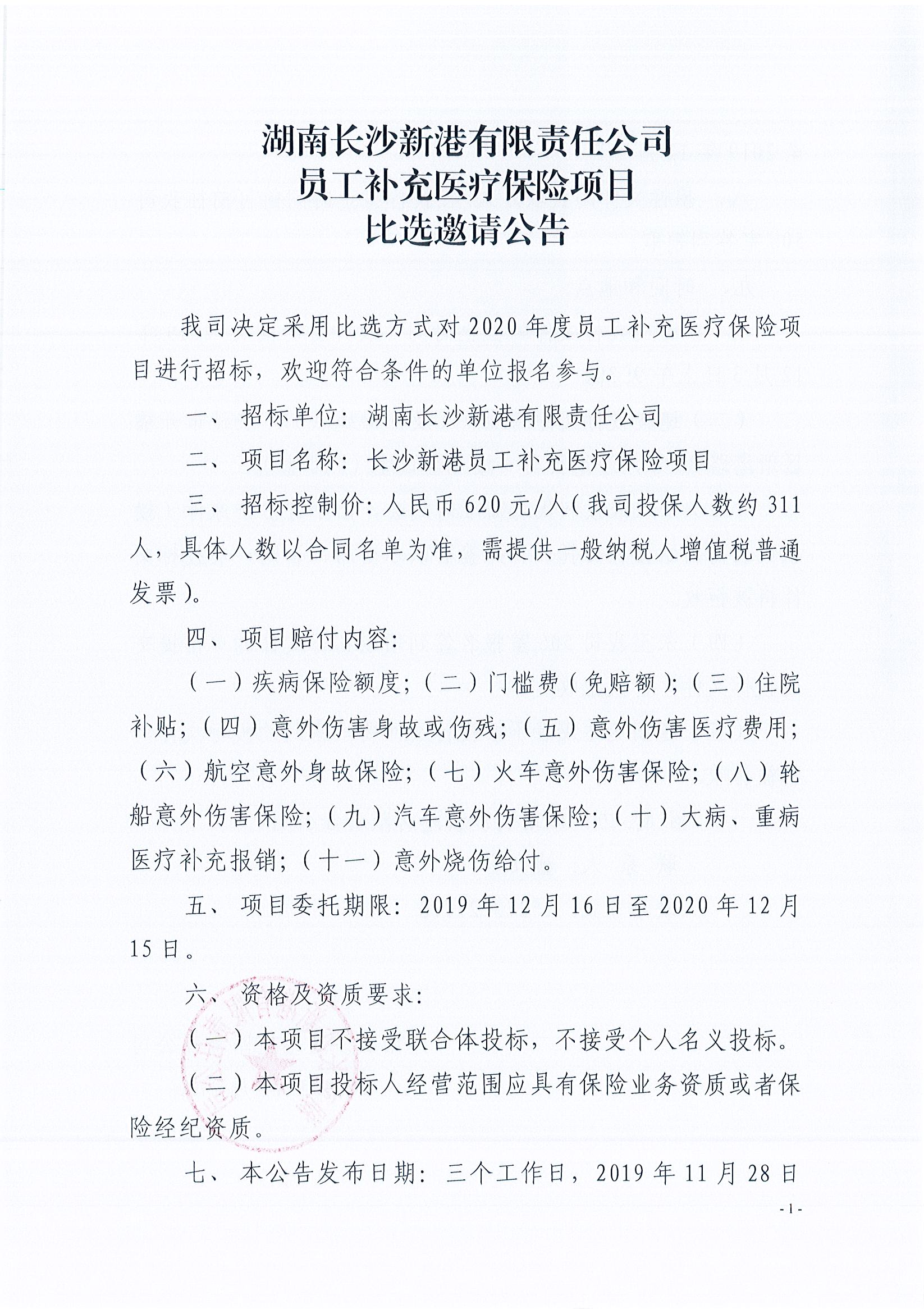 湖南長(zhǎng)沙新港有限責(zé)任公司員工補(bǔ)充醫(yī)療保險(xiǎn)項(xiàng)目比選邀請(qǐng)公告