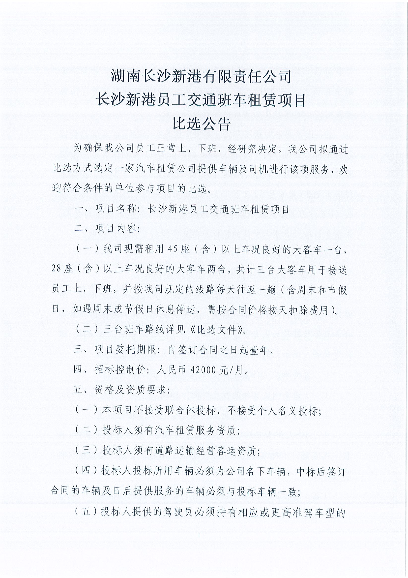 《長(zhǎng)沙新港員工交通班車(chē)租賃項(xiàng)目》比選公告