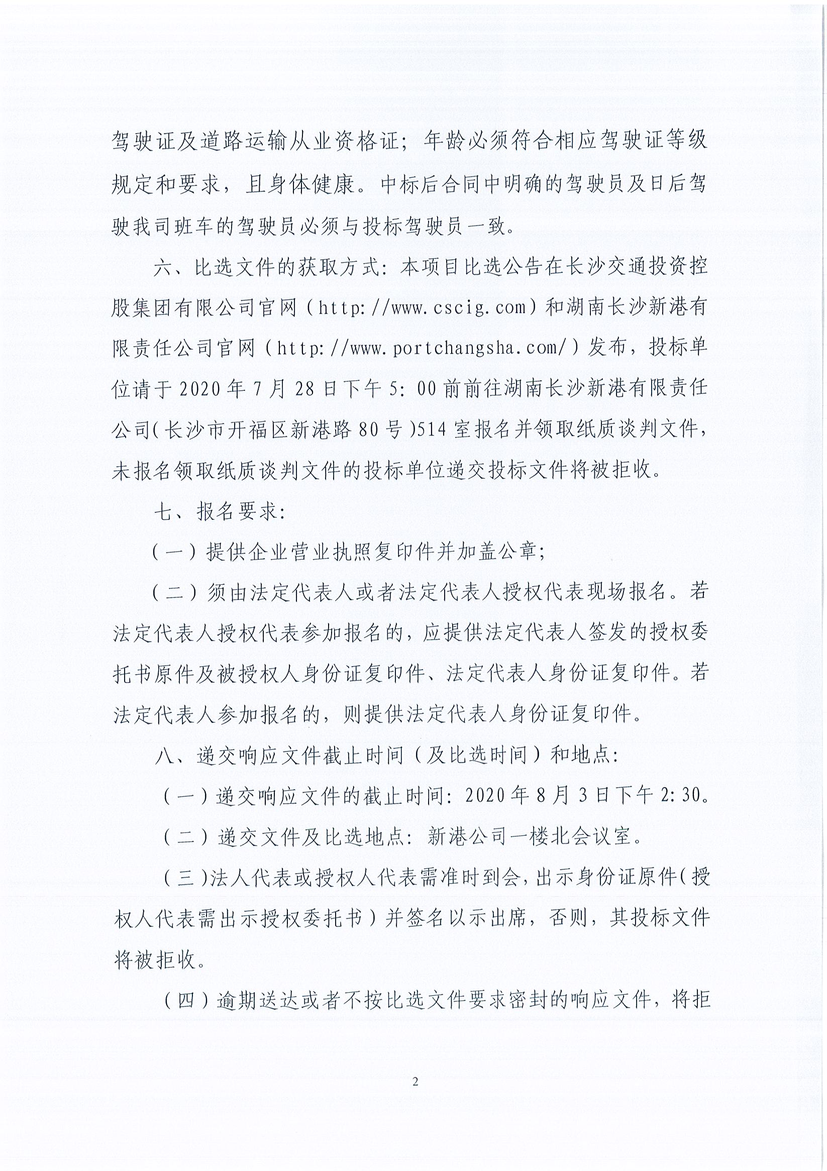 湖南長沙新港有限責(zé)任公司長沙新港員工交通班車租賃項目比選公告(第二次)