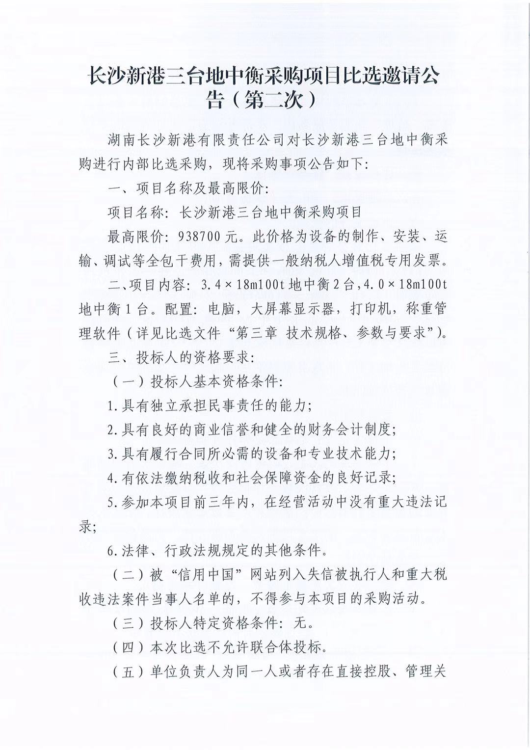 長沙新港三臺地中衡采購項(xiàng)目比選邀請公告(第二次)