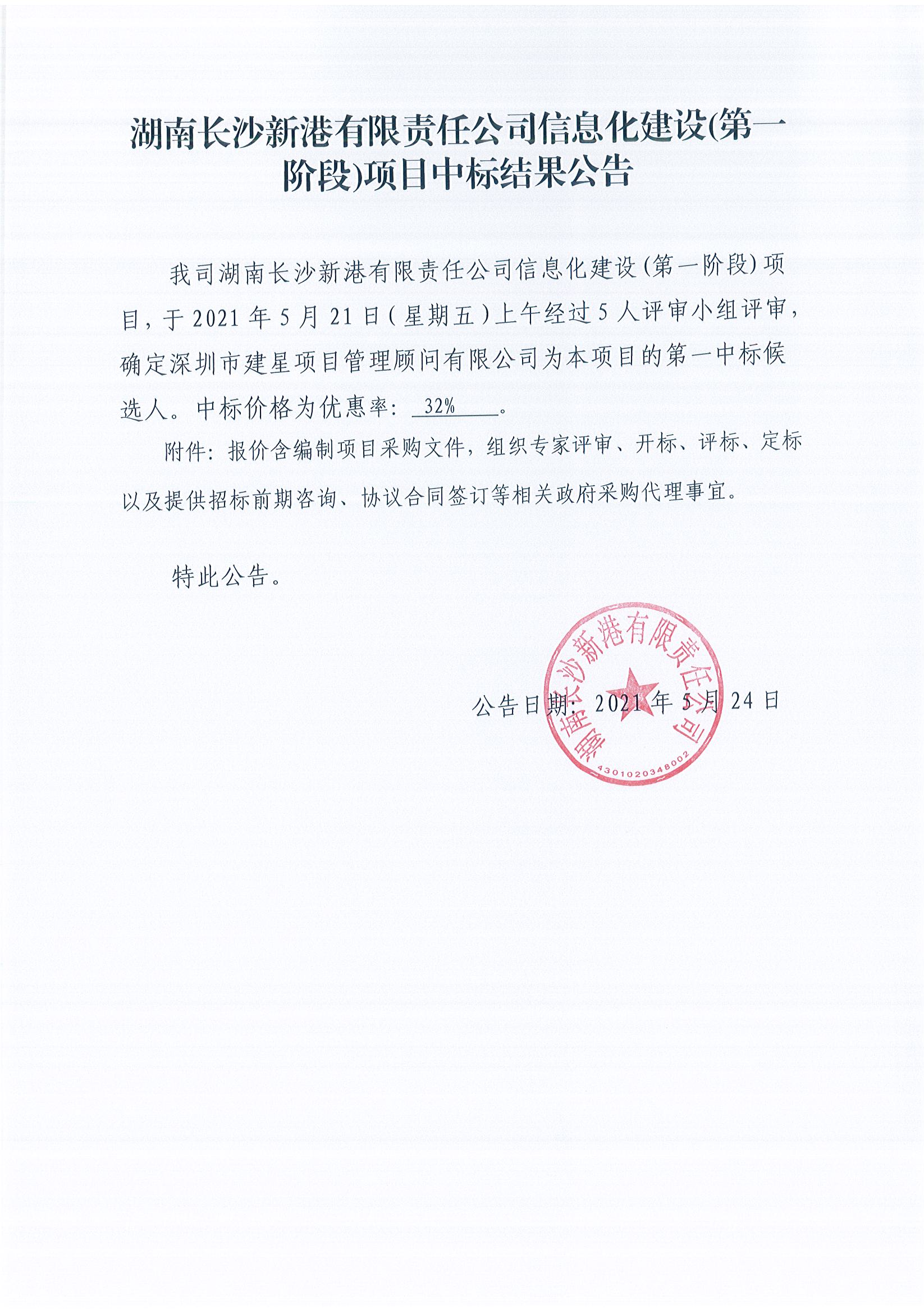 湖南長沙新港有限責(zé)任公司信息化建設(shè)(第一階段)項目中標(biāo)結(jié)果公告