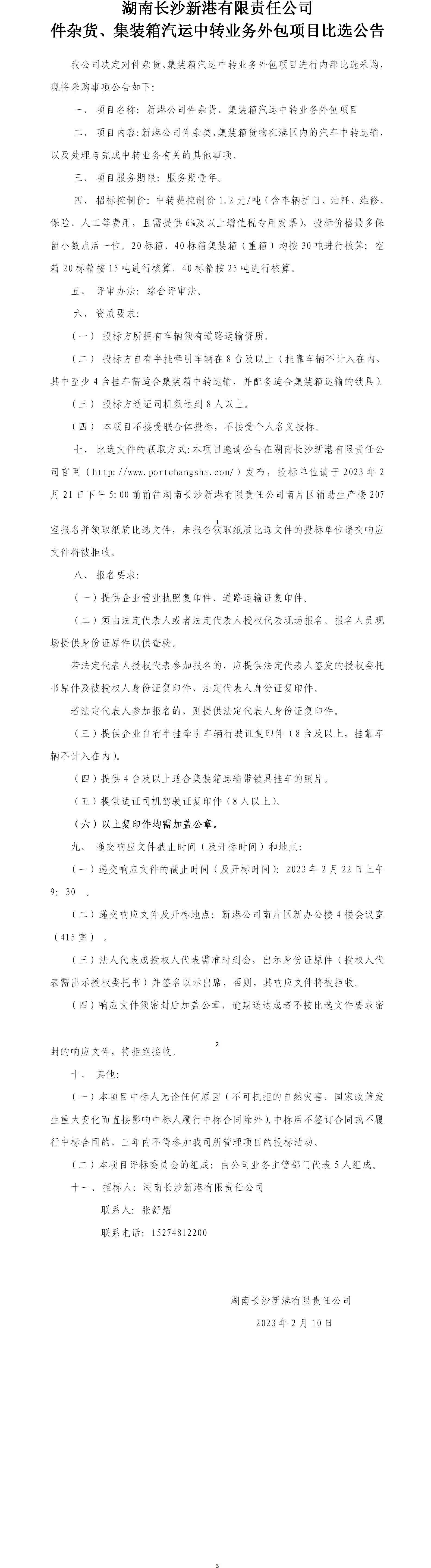 件雜貨、集裝箱汽運中轉(zhuǎn)業(yè)務(wù)外包項目比選公告