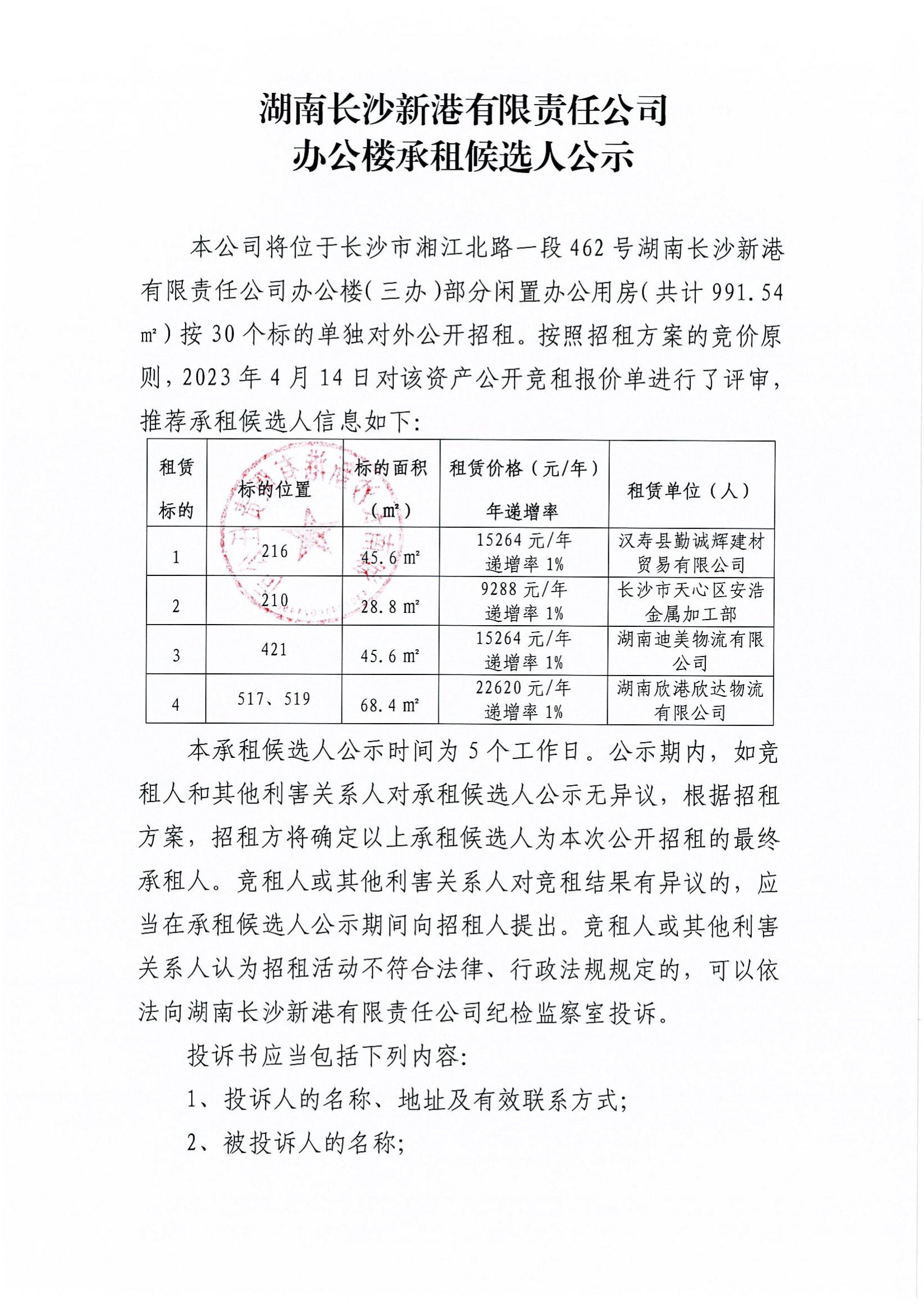 辦公樓承租候選人公示