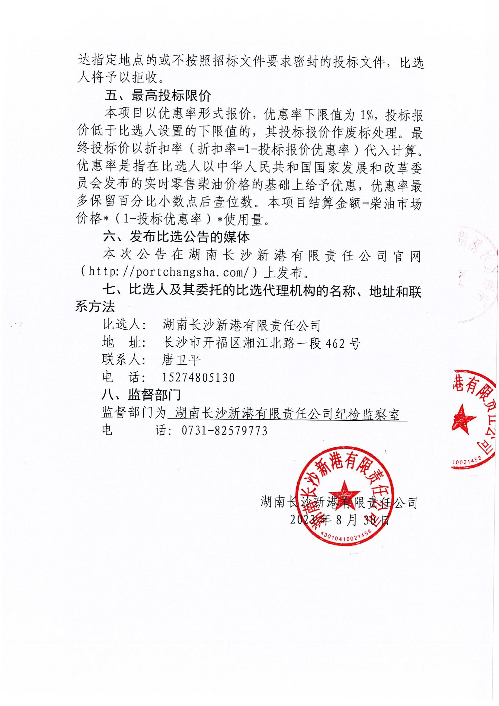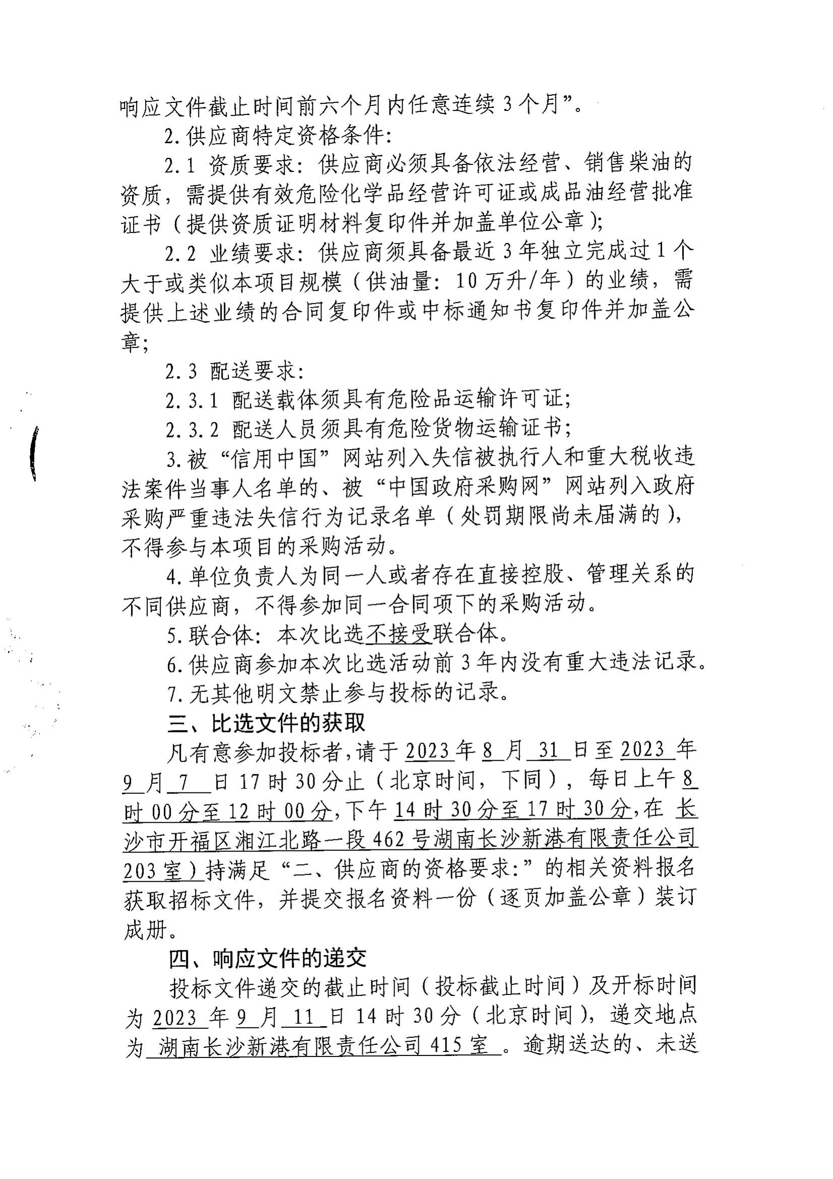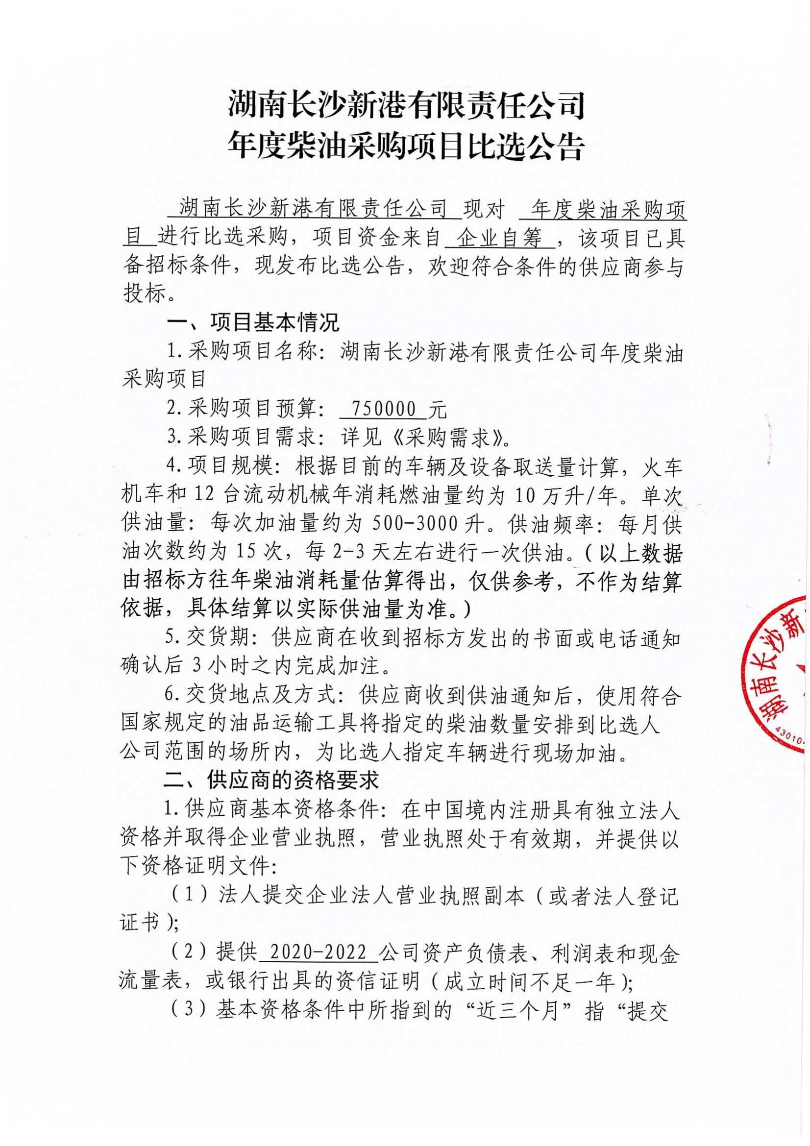 湖南長沙新港有限責(zé)任公司年度柴油采購項目比選公告