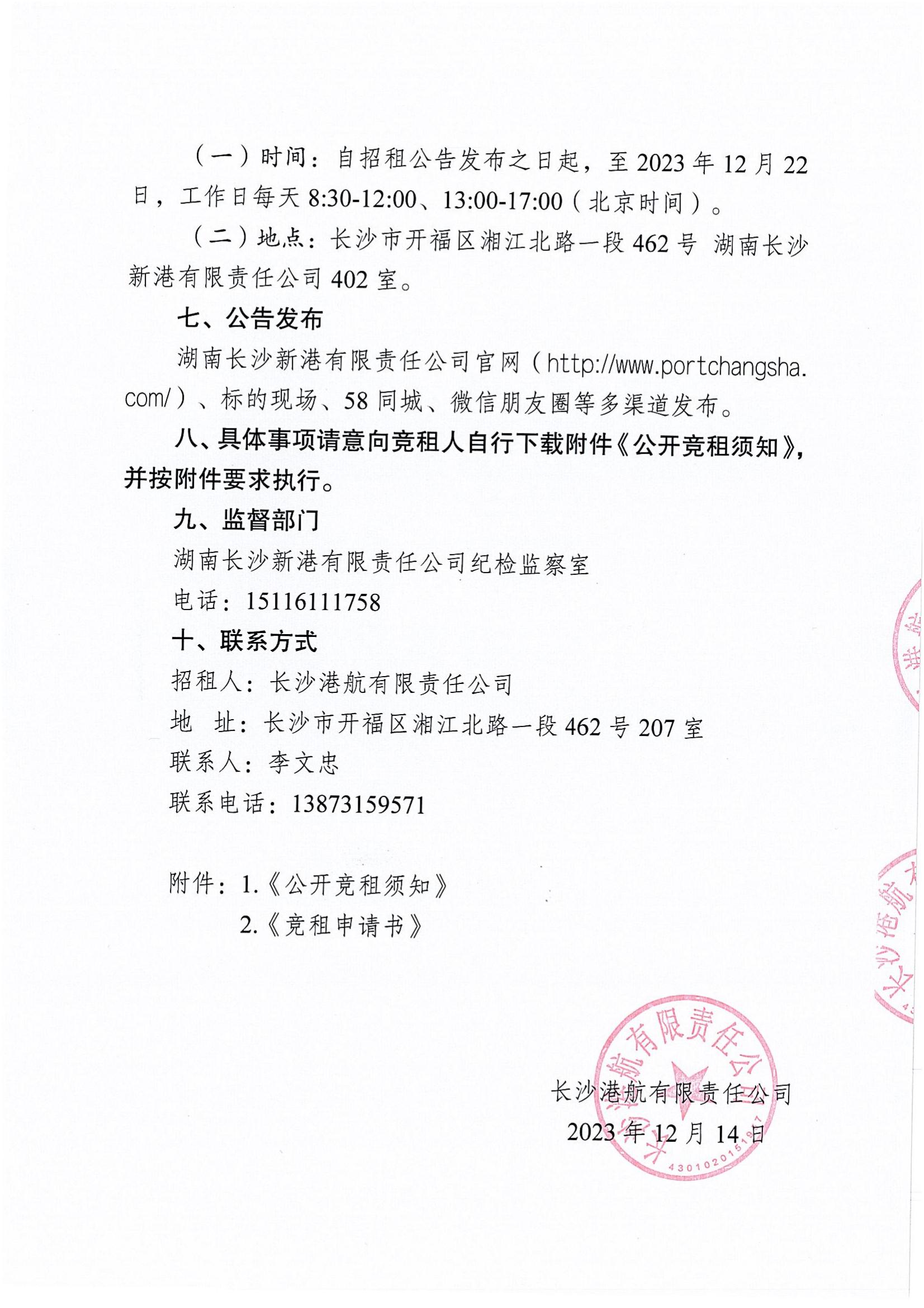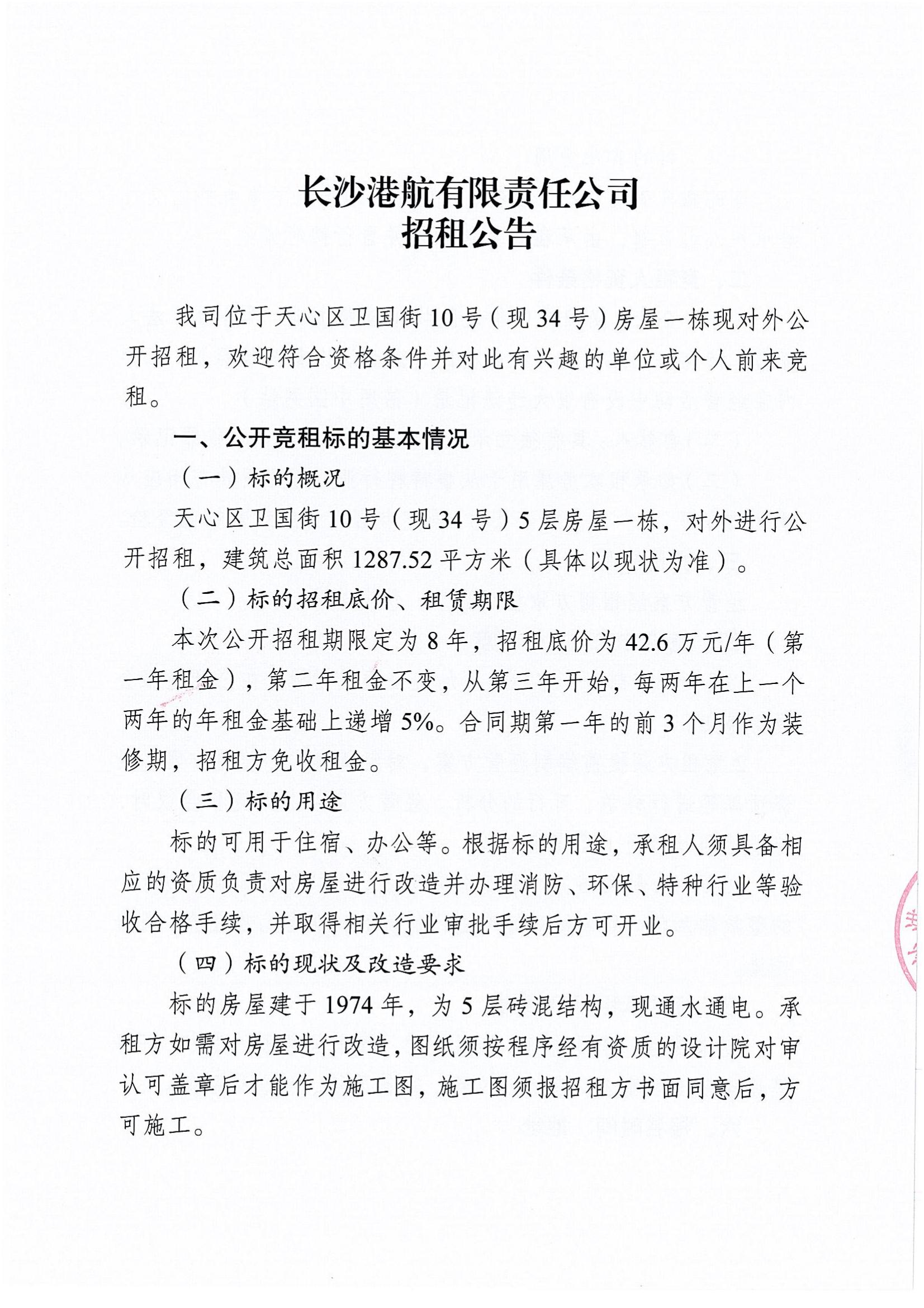 長沙港航有限責(zé)任公司招租公告