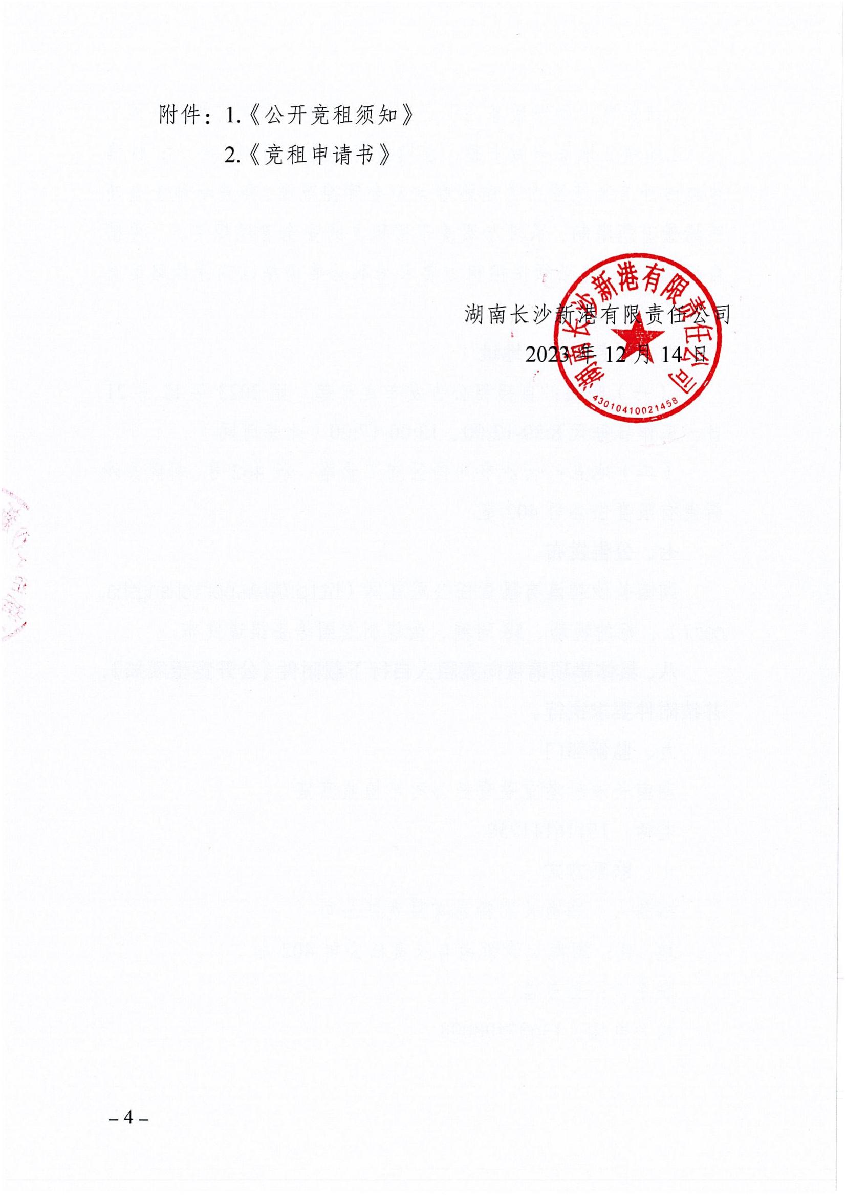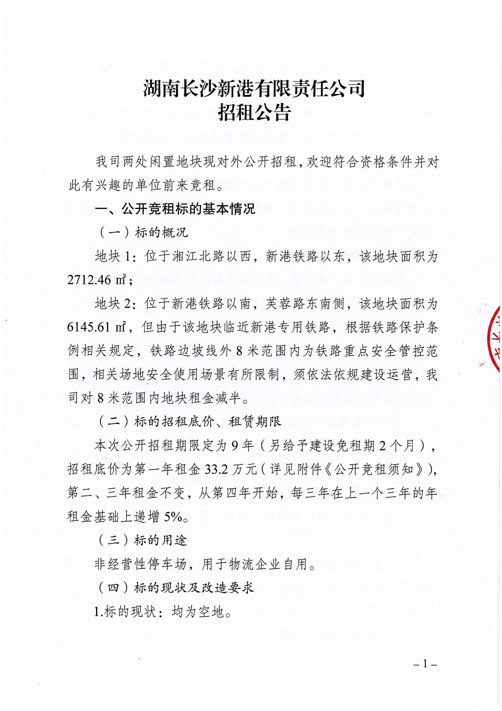 湖南長(zhǎng)沙新港有限責(zé)任公司招租公告