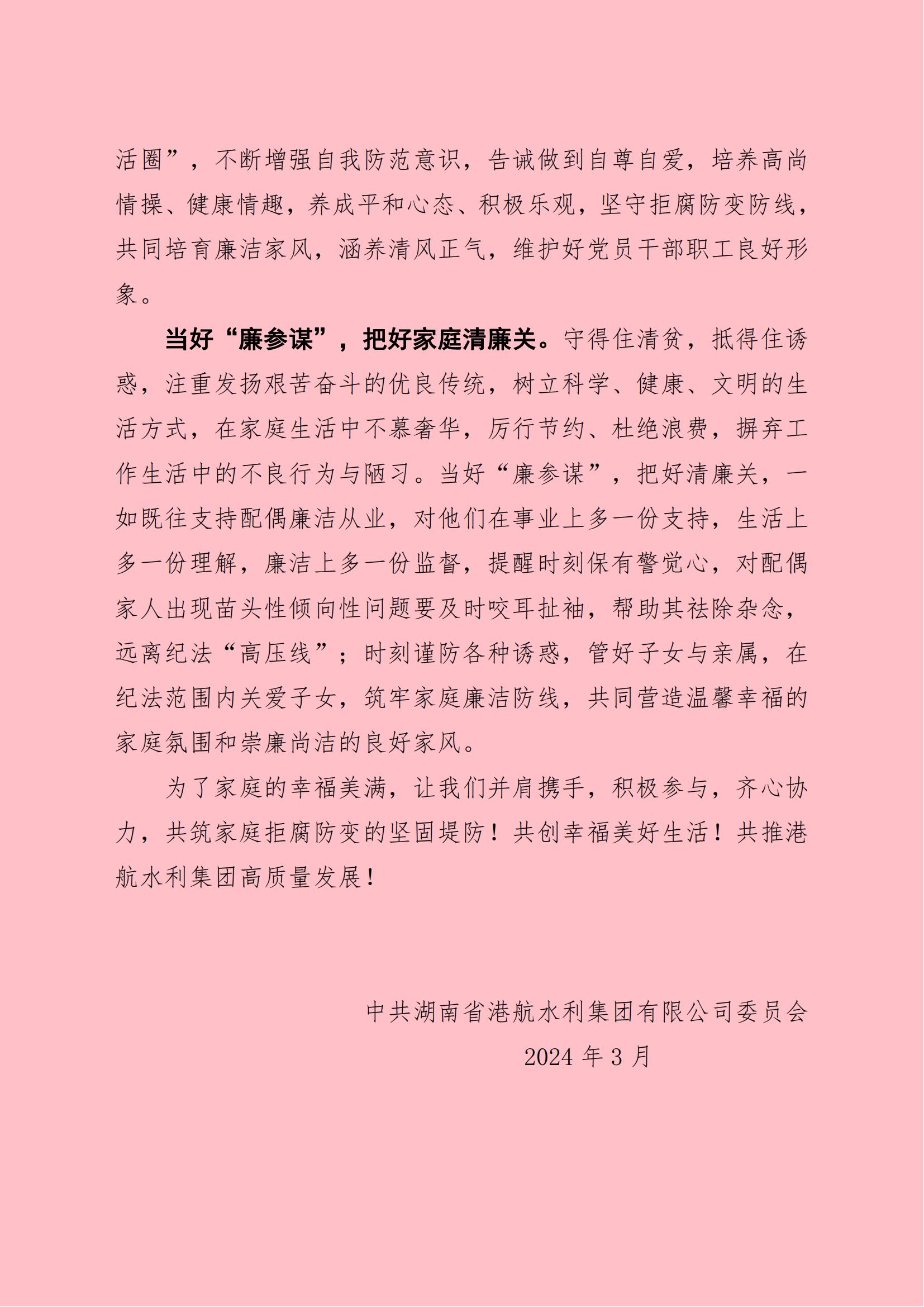 清風(fēng)常伴 清廉齊家—致集團(tuán)全體黨員干部家庭助廉倡議書