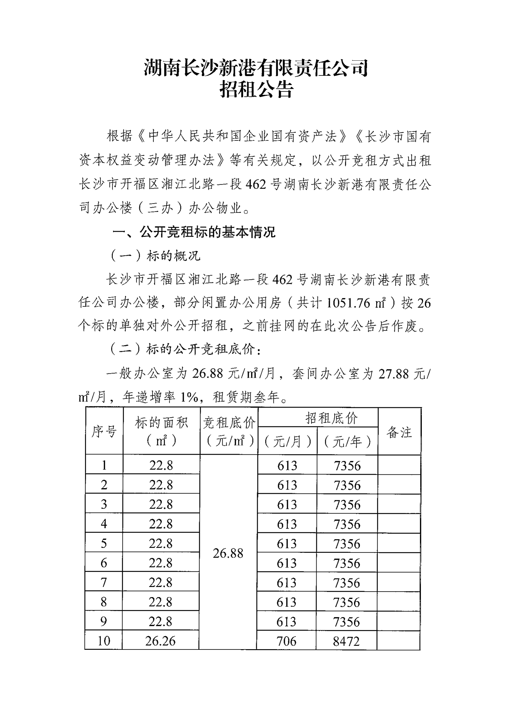 湖南長(zhǎng)沙新港有限責(zé)任公司招租公告