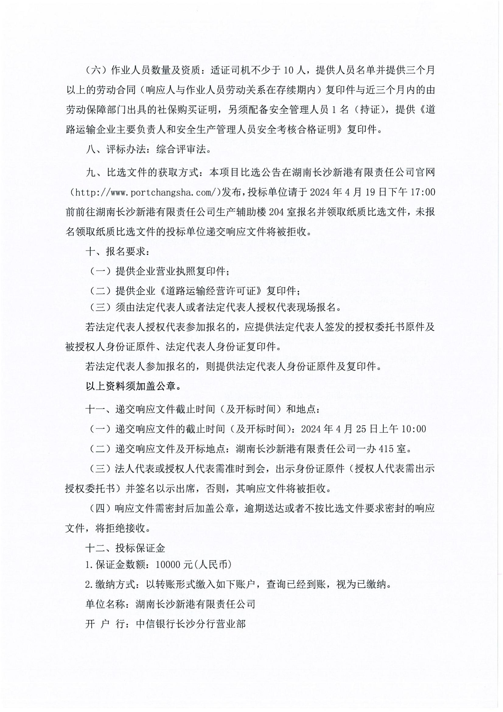 件雜貨、鋼材、集裝箱汽運(yùn)中轉(zhuǎn)業(yè)務(wù)外包項(xiàng)目比選《比選公告(第二次)》