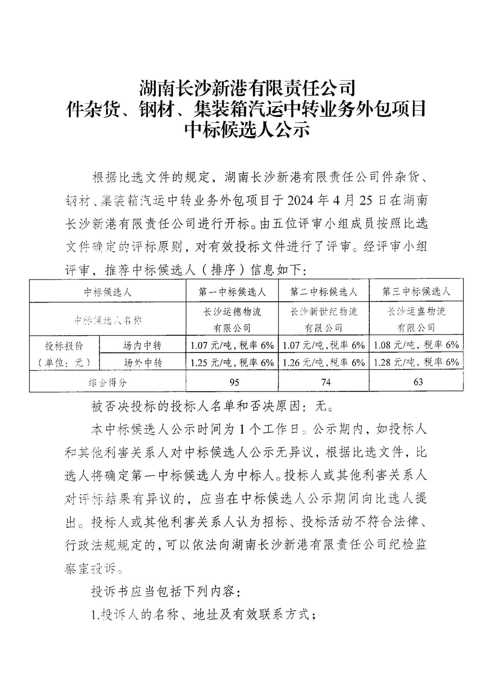 件雜貨、鋼材、集裝箱汽運(yùn)中轉(zhuǎn)業(yè)務(wù)外包項(xiàng)目中標(biāo)候選人公示