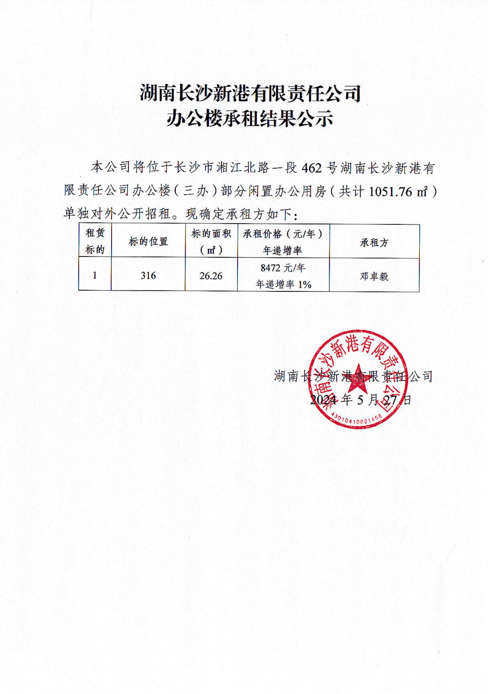 湖南長(zhǎng)沙新港有限責(zé)任公司辦公樓承租結(jié)果公示