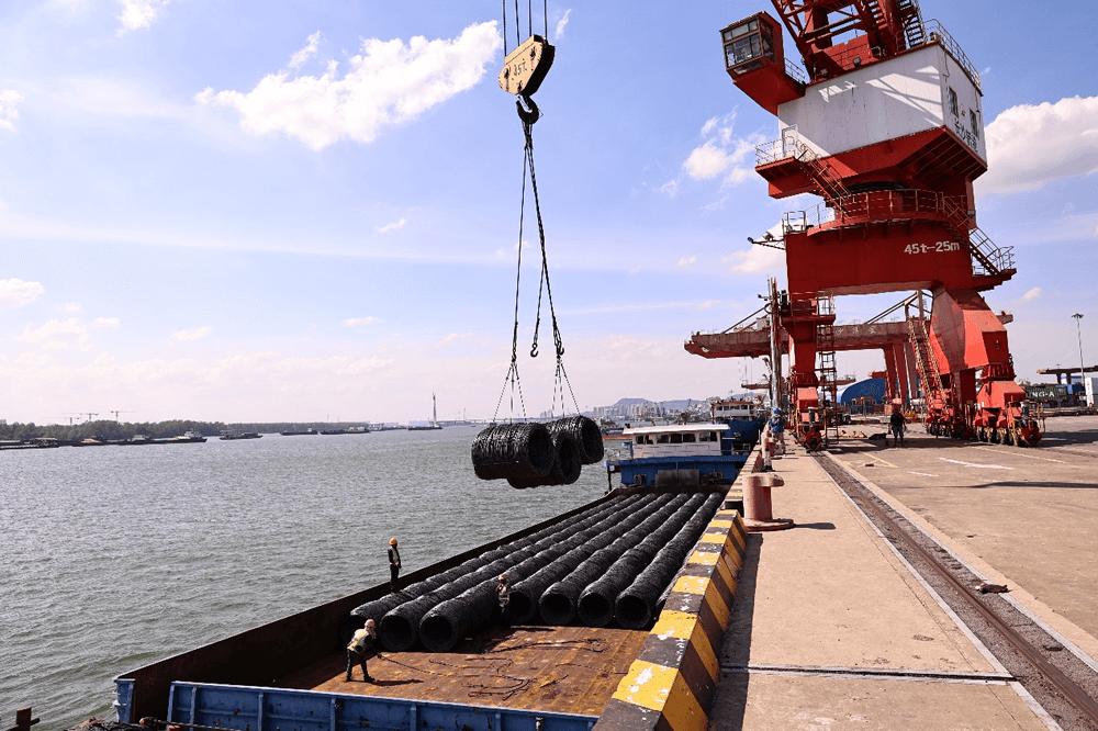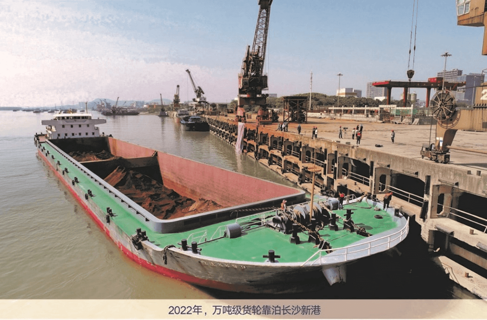 2022年4月7日,長沙新港首迎萬噸級(jí)貨輪。